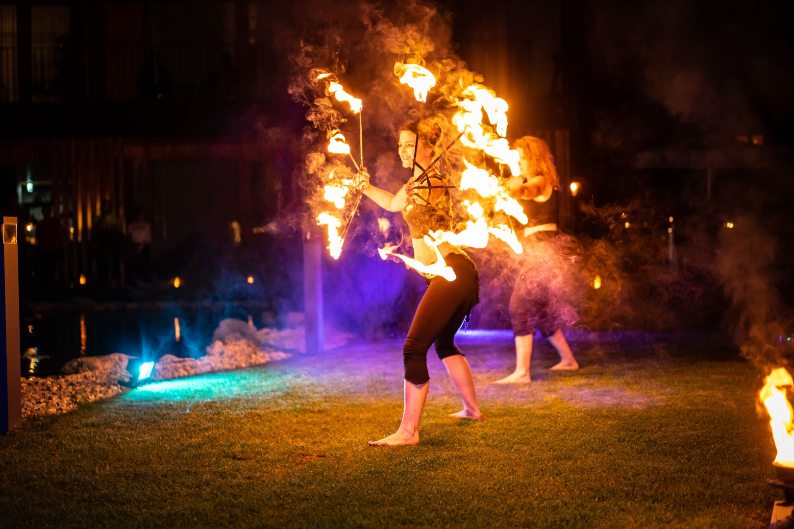 The lighter fire shows from Munich have been delighting their audience for years with burning balls that are artfully danced around the body. Those who like to remember childhood and playing with the hula hoop will love the burning hoops. Dancing with fire fans and kite sticks as well as long burning fire cords are also on the program. The highlight of the show is the fire artist, who dances completely in glowing coals. An unforgettable and beautiful sight. You can also look forward to an enchanting addition of light.