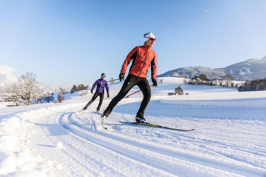 Here you can enjoy cross-country skiing on 45 km of trails in Maria Alm itself - in classic style as well as in skating-style. But you can also step into the Tauern Trail in the neighbouring village. More than 150 km World-Cup-approved trails criss-cross the valley. If you prefer higher elevations – simply ski the high-altitude trails at Arthurhaus and on Dientner Sattel. Those who want to ski longer in the evening, can burn off some real energy on the Gasteg nighttime cross-country trail in Maria Alm.
